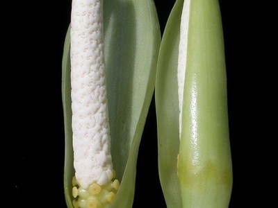 - úžlabní palice s různopohlavnými kvítky, vespod pistillátními, výše samčími, chráněné bledě zelenými, nápadně delšími toulci