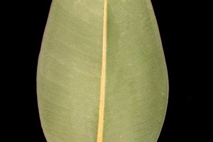 - elipčité, protáhle hrotnatě špičaté, až 0.3 m dlouhé se silnými řapíky; lysé a voskově lesklé, kožovité, se sotva patrnou nervaturou vybíhající paralelně ze silného středního žebra, voskodárné žlázky redukované, palisty veliké, srostlé, blanité, bělavé nebo červené, záhy opadavé