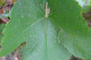 - středně velké, velmi mělce pětilaločnaté až téměř celokrajné, bazální výkroj je lyrovitý, otevřený; povrch listu je tmavě zelený, jemně vrásčitý