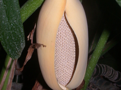 - úžlabní bělavé, později zelenožlutécylindrické palice s oboupohlavnými kvítky, až o.2 m dlouhé a chráněné člunkovitými, temně žlutými toulci; vyvíjeny jsou z listových paždí po několika