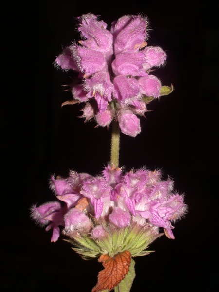 - zygomorfní, různoobalné, pětičetné, srostloplátečné, dvoupyské se svrchním pyskem zevnitř hustě vousatým, purpurové, plstnatě oděné, s dvoumužnými tyčinkami s přívěsky