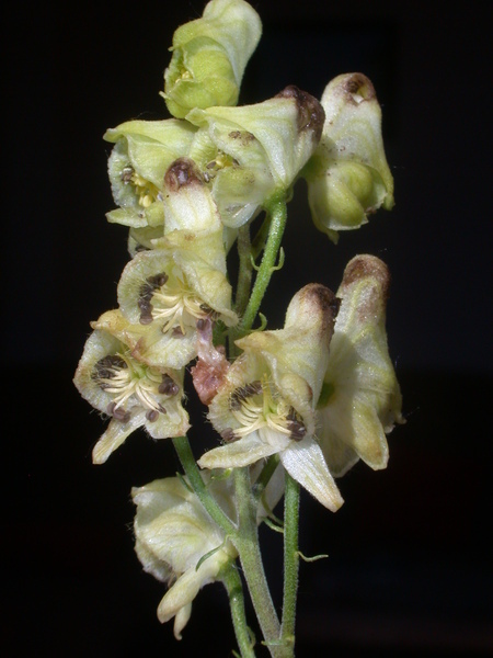 - husté hrozny (u subsp. lycoctonum a subsp. penninum rozvolněné)
