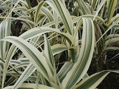 - silné olistěná, cca 2 - 3 cm tlustá stébla připomínající mambusové výhony nesou dvouřadě uspořádané listy a vytvářejí hustý porost