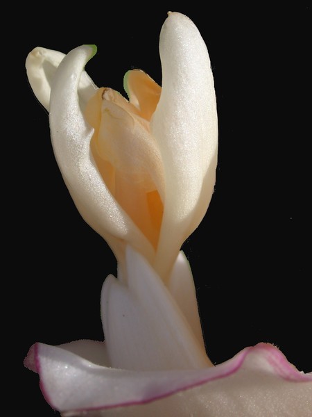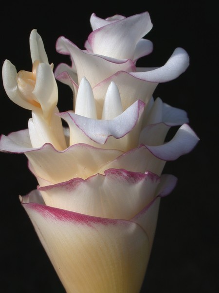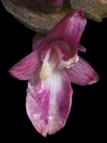 - vejčité klasyaž 0.1 m dlouhé se zelenými, zevnitř purpurovými, spirálně sestavenými listeny a asymetrickými purpurovými květy