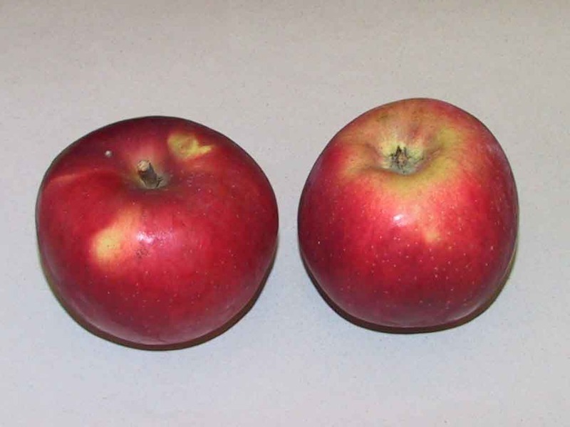 - středně velké, ploše kulovité, zelenavé s rozmytou tmavou červení, středně šťavnaté a aromatické, chutí připomíná ´Spartan´