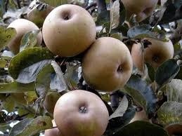 - středně velký, pravidelný, kulovitého tvaru, slupka drsná, bronzovohnědá, základní barva jasnězelená, v plné zralosti žlutá, dužnina jasněžlutá, veľmi šťavnatá, sladká, výborná, renetovitá