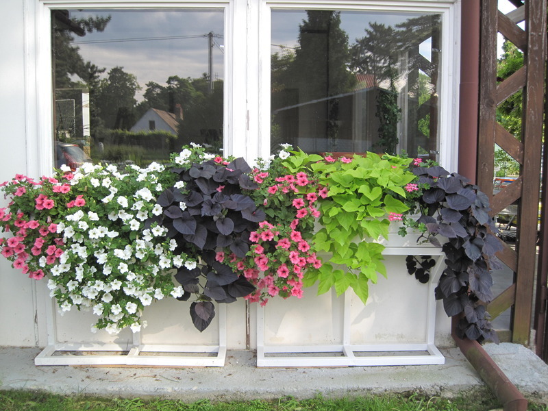 Použití Ipomoea batatas v truhlíku vyžaduje jeho velký objem. Lednice, 2010. Foto: T. Kuťková.