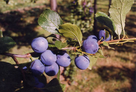 - slívy, středně velké, oválné až kulovité, modrofialové, šťavnaté, velmi chutné, dužnina zlatavá až žlutohnědá, špatná odlučitelnost