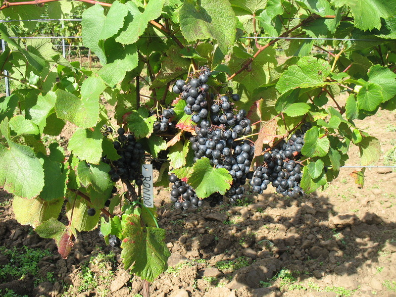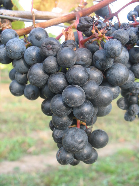 - malý kuželovitý hrozen, hustý; má větší kulaté bobule, modročerné barvy