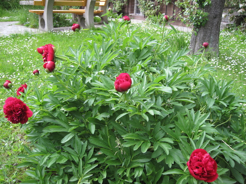 - s Paeonia lactiflora (ta je vyšší, list sytě zelený a lesklý, ccao 14 dní pozdnější v kvetení)