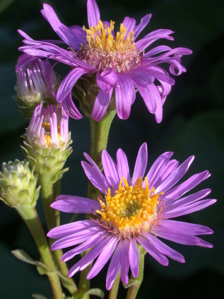 - poměrně veliké úbory s 2-3řadými zákrovy (lístky zákrovu obvykle tupé, purpurově lemované a brvité) a s 25-40 paprsky, seskládané v bohatých chocholičnatých latách až 0.3 m širokých