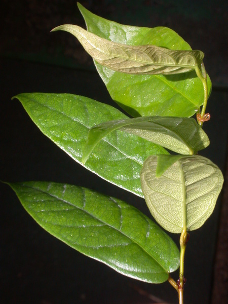 hrotnatě elipčité, pergamenovité nebo kožovité, zhruba 0.1 m dlouhé (v dopělosti větší), symetrické, lysé nebo řídce pýřité, s cystolity, často s podvinutými okraji; nervatura zespodu vyniklá