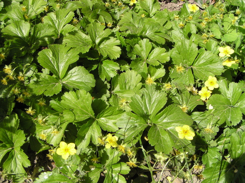 - květy mírně nad listy, 5 četné, žluté, cca 1 cm v průměru, podobající se květu jahodníku