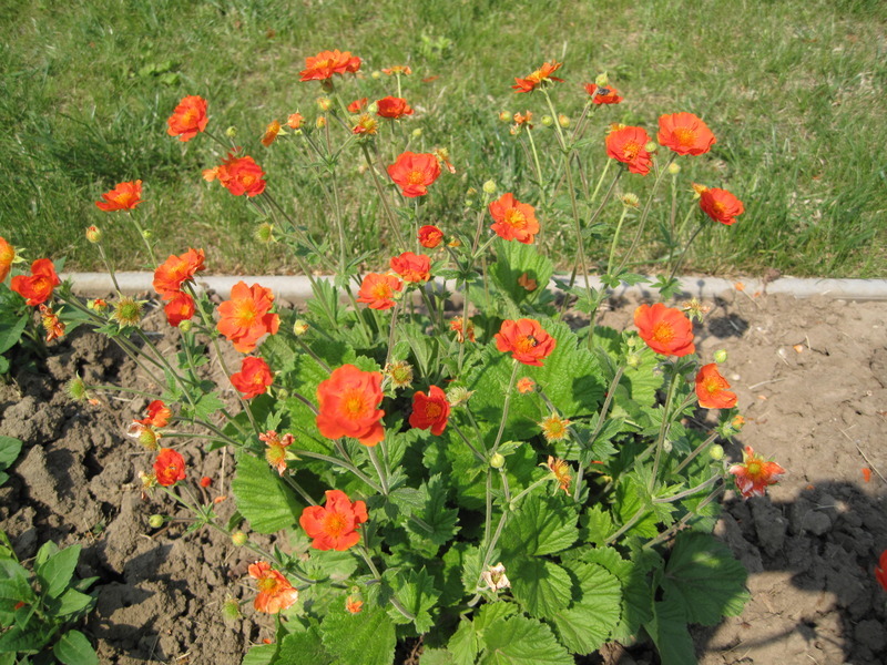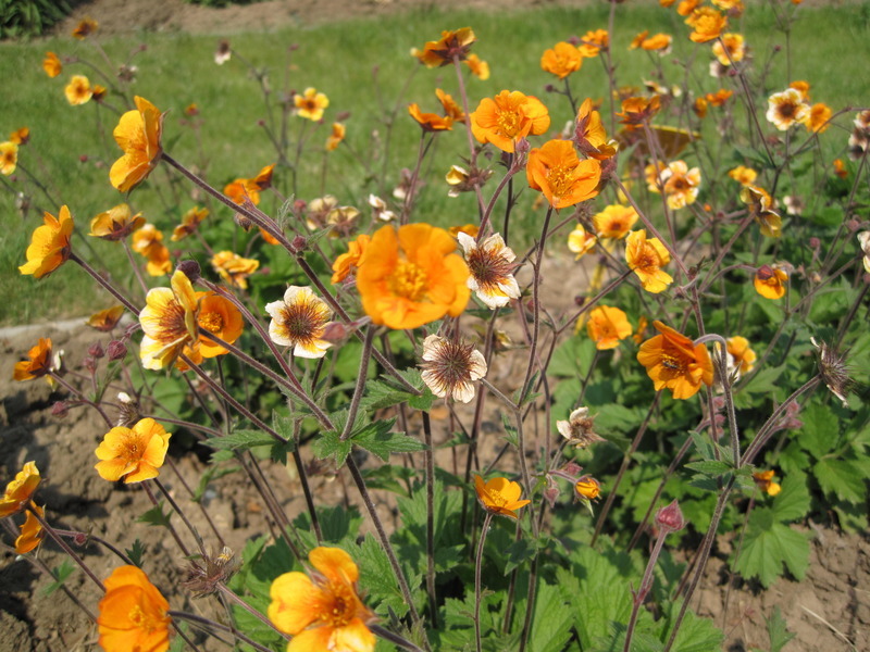 - O 24 b: záhon mezi panelovou cestou a pařeništi / ZF - O - Experimentální zahrada - záhony (O24 b: ´Dolly North´, ´Georgenberg´, Geum rivale, )