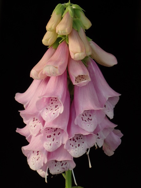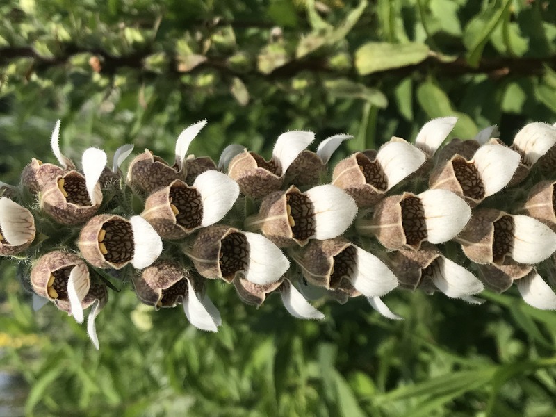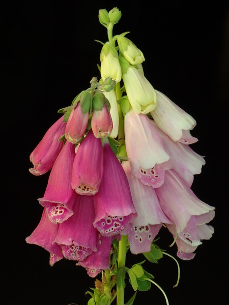 - 4 - 5 četné dvoupyské květy, převyslé červenofialové, bílé, uvnitř tmavě skvrnité
