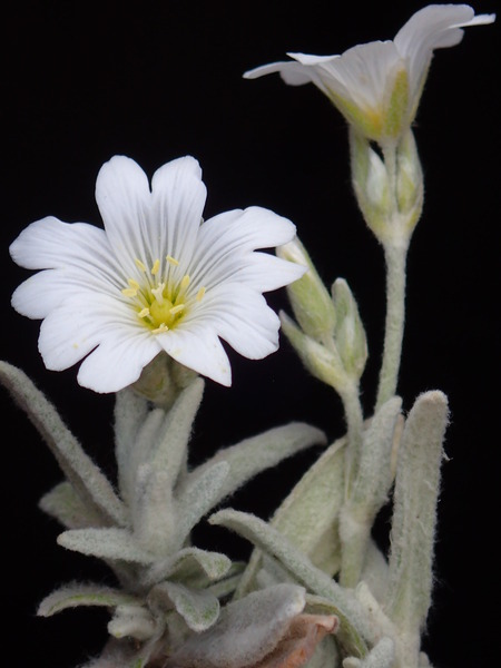 - oboupohlavné, různoobalné, volnoplátečné, pravidelně pětičetné, s až centimetr dlouhými, plstnatými, blanitě lemovanými sepaly a dvakrát delšími bílými dvouklannými petaly; semeníky s pěti čnělkami