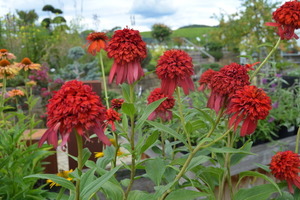 - jazykovité květy nachové, okvětný plátek 3 - 8 cm velký, odstálý až převislý; trubkovité květy seskupené do vypouklého, tvrdého disku