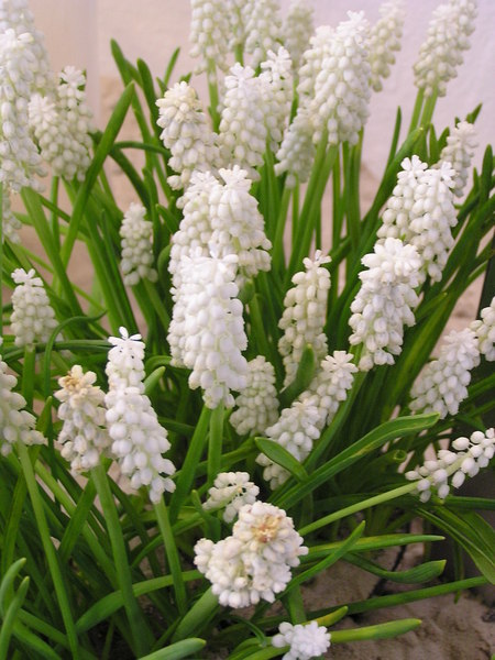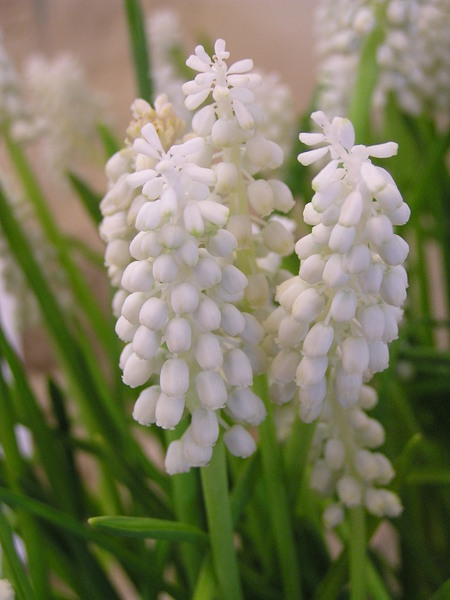 - Z kulovité cibule světlé barvy kryté tmavě hnědou slupkou vyrůstají úzké trávovité až široce kopinaté, ploché nebo žlábkovitě prohnuté listy, někdy s vroubkovaným okrajem. Bezlistý květní stonek je ukončen hustým hroznovitým květenstvím válcovitého nebo kuželovitého tvaru. V květenství se často objevují jak plodné, tak sterilní květy odlišné barvy. Jednotlivé kvítky mívají soudečkovitý až trubkovitý tvar, jsou tvořeny srostlými květními plátky nejčastěji modré barvy.
