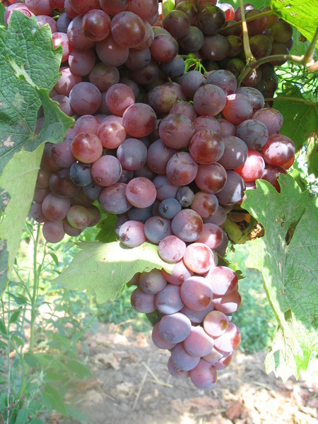 hrozen je velký, kuželovitý, hustý; bobule je velká, oválná, tmavě červenofialová