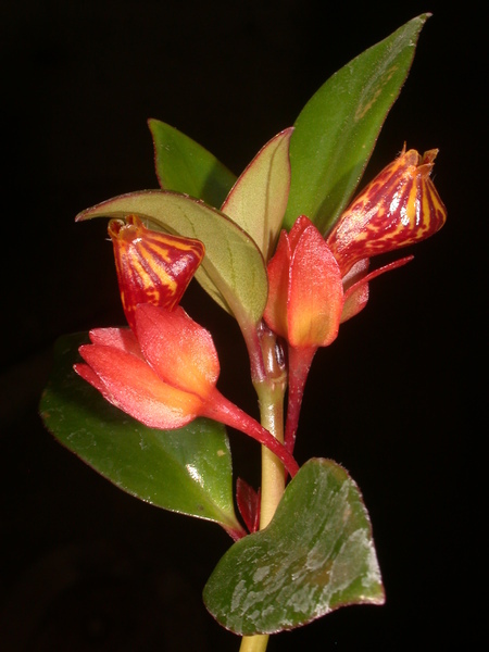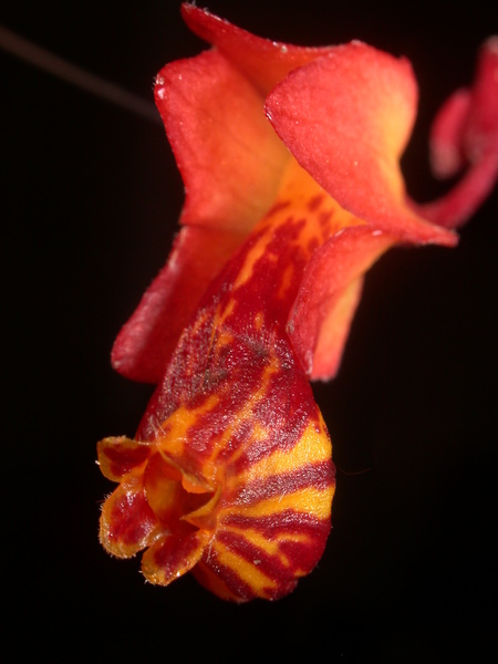 - zaměnitelná s podobným N. striatus (květy rovněž pýřité s menším, ale živě červeným kalichem) a některými hybridy (´Tropicana´ s kalichem rovněž červeným a s květy lysými a resupinátními)