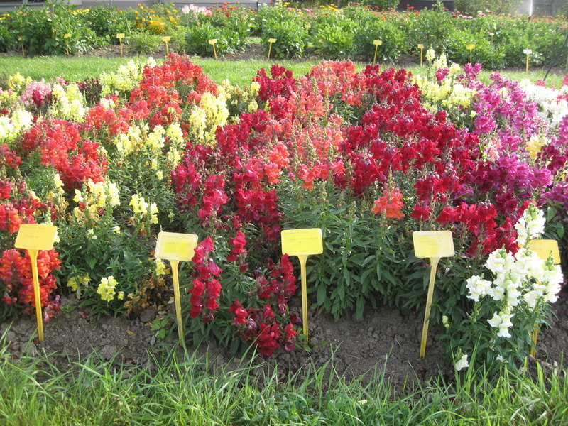 Antirrhinum majus - ukázka barevné škály vysokých hledíků ze série Liberty™. Foto: T. Kuťková.