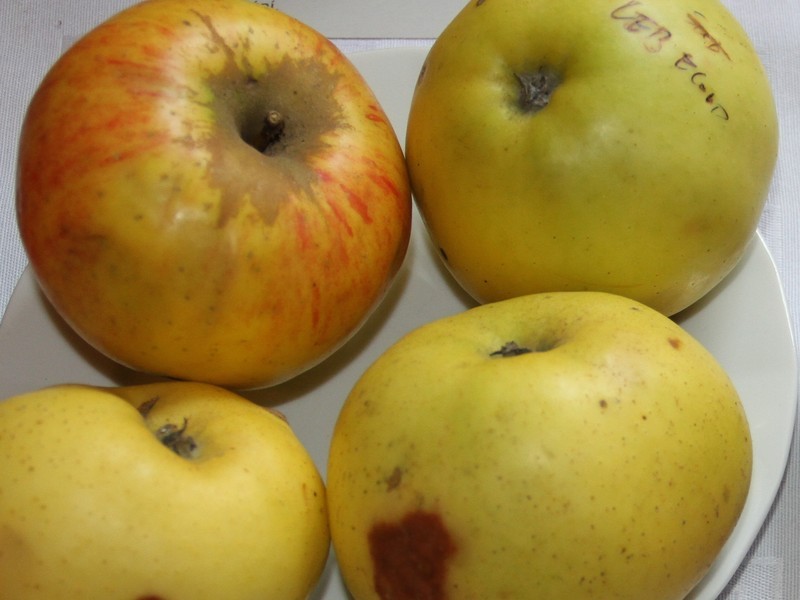 velké, zploštělé, téměř pravidelné,slupka hladká, lesklá, silně mastná, žlutá, slabě mramorovaná, dužnina křehká, měkká, žlutobílá, velmi šťavnatá, nakyslá, osvěživá, dobrá